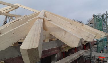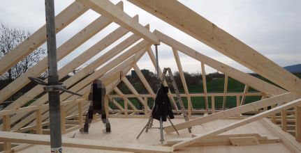 Durch den Einsatz modernster Abbundtechnik und Software sind wir in der Lage, die vielfältigsten Dachvarianten zu planen und mit höchster Präzision herzustellen. Durch den hohen Vorfertigungsgrad der Abbundarbeiten in der Abbundhalle sind geringste Montagezeiten auf der Baustelle erforderlich. Gesteigert wird dies noch zusätzlich durch den Einsatz kompletter Dachelemente mit Unterdachbahn, Lattung und Konterlattung.